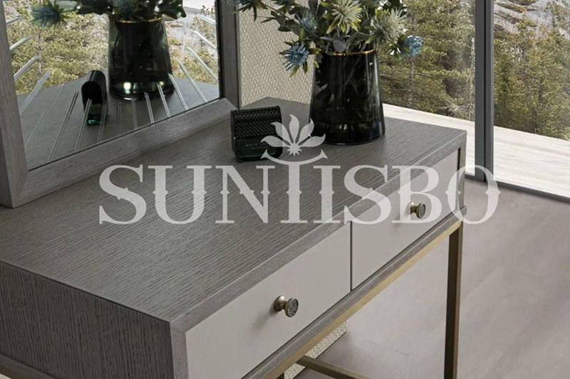 面板鑲嵌的編織紋皮質(zhì)在實木的基礎(chǔ)上進行雕刻,輔以極佳的傳統(tǒng)編織藝術(shù),讓空間倍顯溫潤時尚感。
