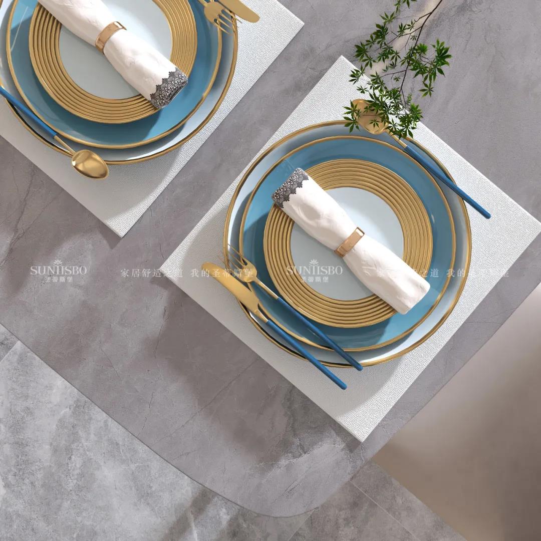 簡奢餐桌與玻璃大立柜,將空間簡化,帶來了純粹的空間視覺效果。金色鑲邊的點綴,為這份純粹增添了奢華質感。極簡玻璃定制柜體,拉開了大空間的開闊視野,光影交匯間,硬朗的氣質與柔和的自然光產(chǎn)生了趣味的互動,為空間提供了更具藝術張力的奢享用餐體驗。