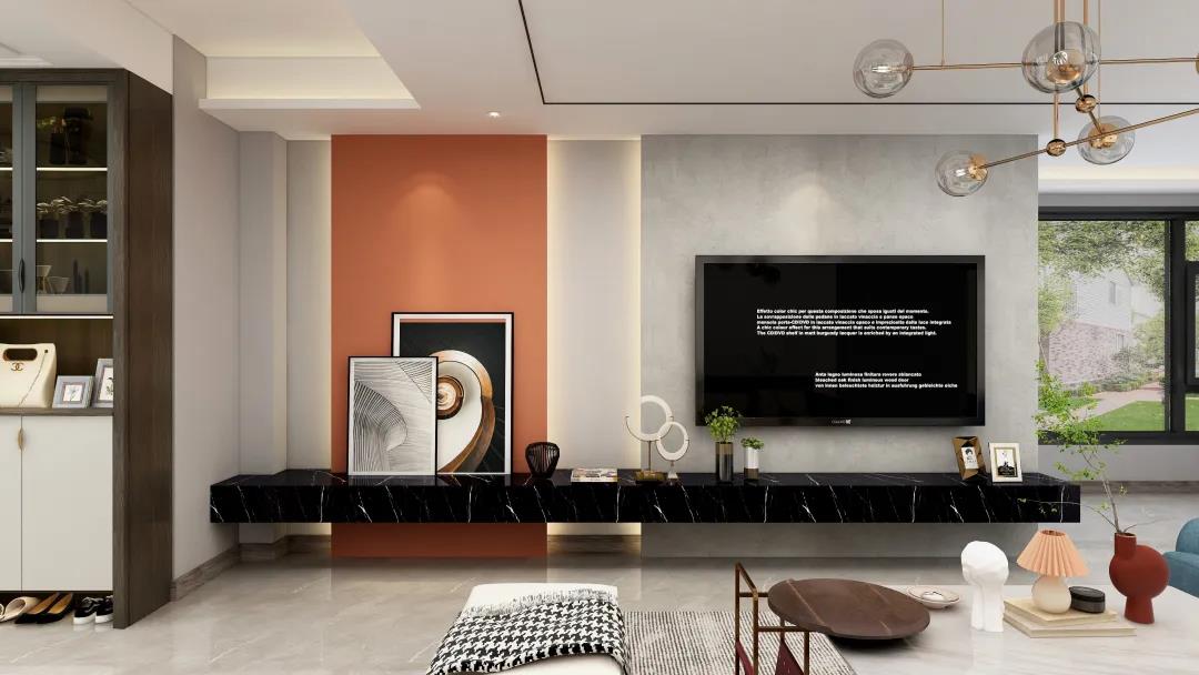 窗外的陽光使得客廳空間更加明亮寬敞。電視墻精致的線條設計,令空間更具層次感。亮眼的愛馬仕橙,搭配個性的抽象掛畫又讓整個墻面更加豐富。活力與沉穩(wěn)融合,給平凡而枯燥的生活增添些許希望與美好。