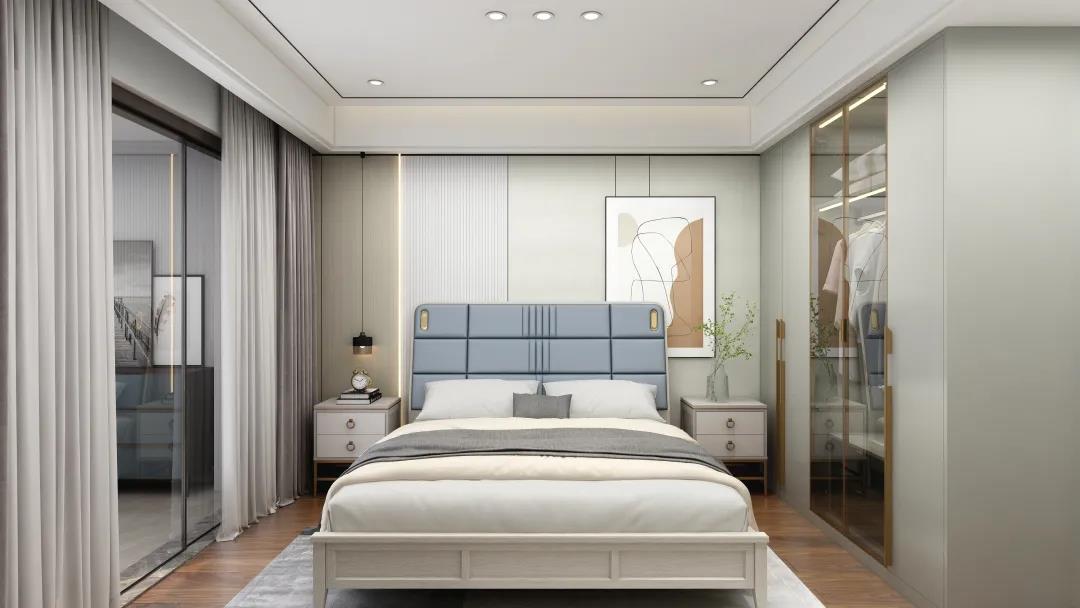 合理利用空間,這樣主臥便集臥室、衣帽間為一體,居住舒適度大大提升。營造了一個舒適度滿滿的私密空間。