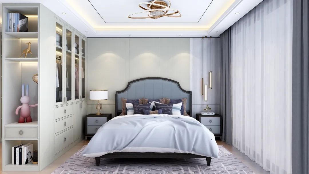 優(yōu)雅沉靜的霧霾藍(lán)床架,干凈利索的線(xiàn)條設(shè)計(jì),天然的皮革紋路,與原木色的墻面相呼應(yīng),純粹、樸實(shí),營(yíng)造出輕奢簡(jiǎn)約的氛圍,滿(mǎn)足了屋主對(duì)空間的無(wú)限暢想。